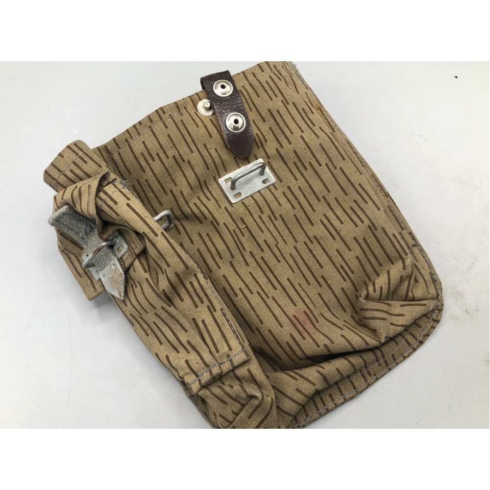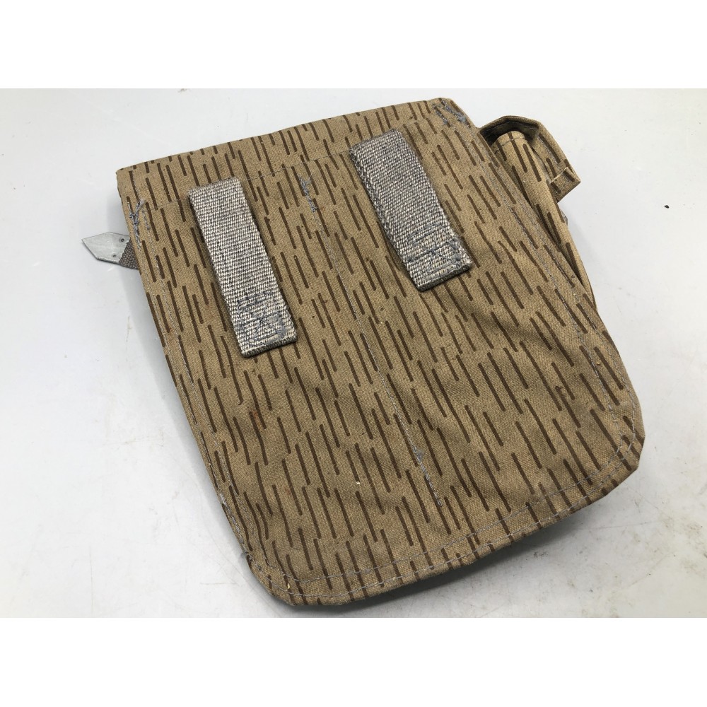 East German AK Magazine Pouches in the "Raindrop" camo known as Strichtarn. Condition is good to very good. These will be dirty and may have light rust on the metal end tabs. Possible oil stains. The picture is representative of condition. Style and shape may vary from pouch to pouch.