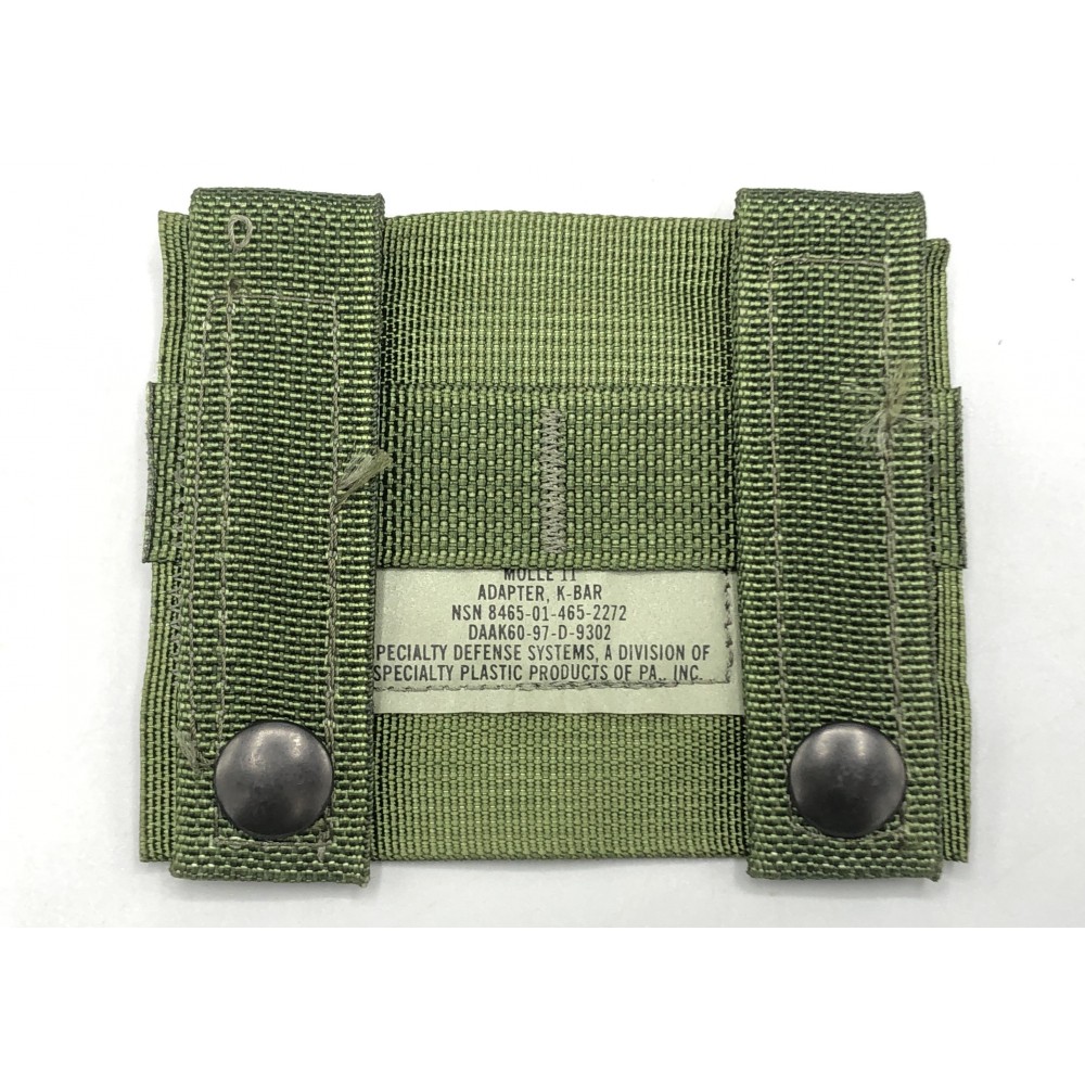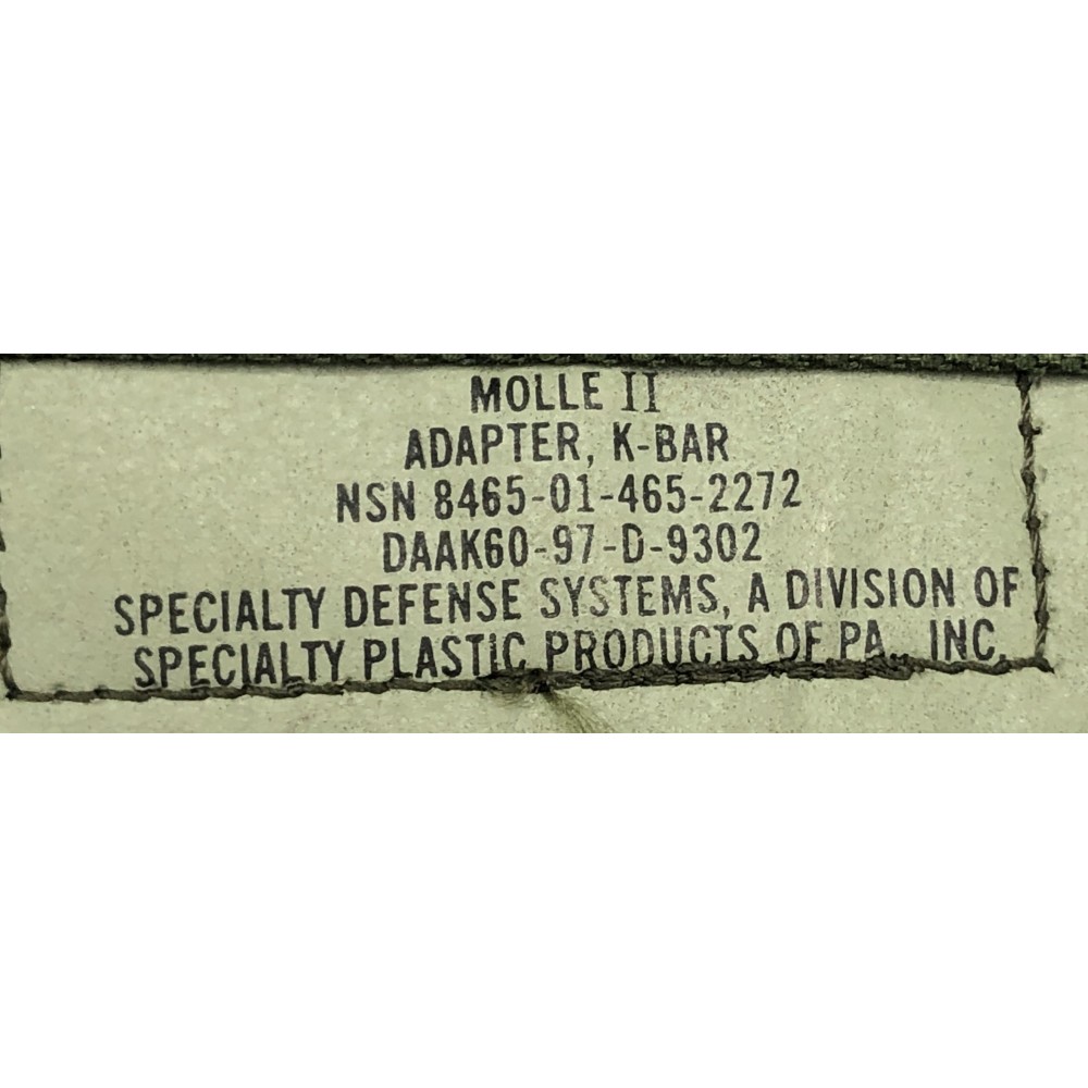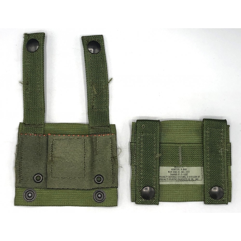 USGI Surplus BDU Molle K-Bar Adapter. Allows the mounting of K-Bar knives and other accessories to MOLLE webbing. NSN: 8465-01-465-2272. In very good condition.